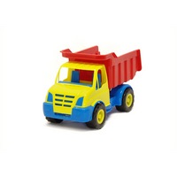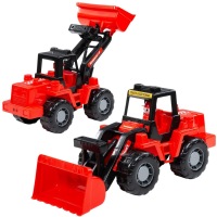 Ребенок может играть трактором как самостоятельной игрушкой или дополнить прицепом, необходимым во время перевозки грузов и материалов. Передний ковш поднимается и фиксируется, кузов прицепа также поднимается, задний борт откидывается. Строительный автотранспорт изготовлен из прочного пластика ярких цветов, гладкие детали приятны на ощупь, спецтехнику можно мыть под водой.
