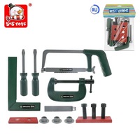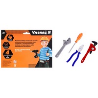 Все мальчишки завороженно следят, как в папиных умелых руках из досок собирается комод, а в шкафу появляются новые полочки. Так хочется взять эти рабочие инструменты! Предложите ребенку свой детский набор. Здесь есть дрель с 3 съемными насадками, молоток, угольник, дощечки с отверстиями, чтобы закручивать в них болты и закреплять их гайками. Всего в комплекте идет 14 предметов. Расскажите, как называются эти средства для ремонта и для чего они нужны.